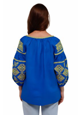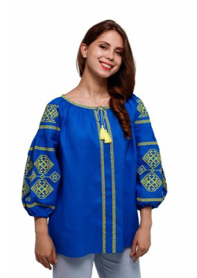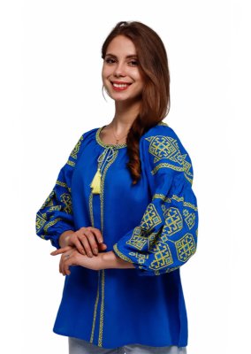 Вишиванка жіноча Слобожанка - Світодара (індіго, жовта вишивка) (29733)