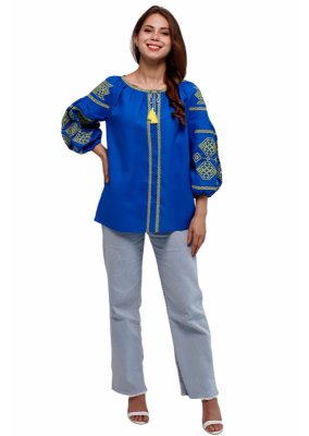 Вишиванка жіноча Слобожанка - Світодара (індіго, жовта вишивка) (29986)