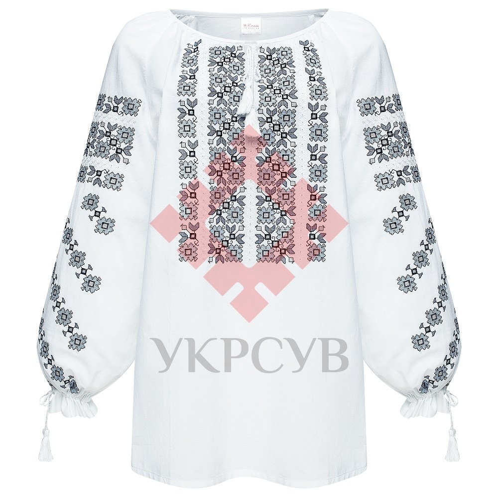 Кольори вишивки - блакитний, чорний: блакитний - колір небосхилу і води. Є символом очищення, душевного спокою та позбавлення від хвороб. Чорний - символ годувальниці землі.