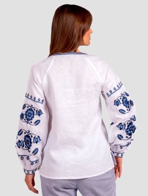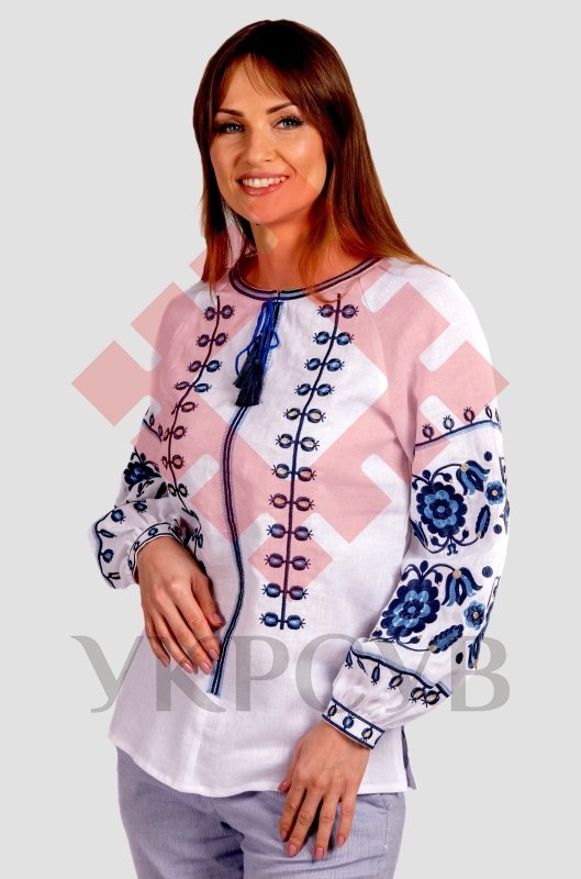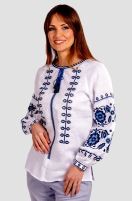 Вишиванка виготовлена з натурального 100% льону білого кольору. Оригінальна вишивка гладдю прикрашає вишиванку спереду та на рукавах.