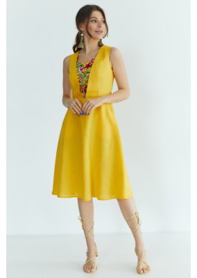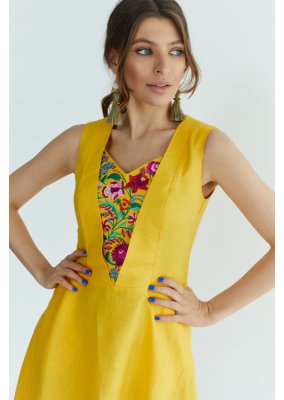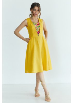 Легка, приємна на дотик, а головне натуральна тканина, не парить та пропускає повітря. Кишені в бокових швах роблять сукню більш практичною. Передня частина сукні прикрашена квітковою вишивкою, виконаною гладдю різнокольоровими нитками. Зважаючи на світові тенденції, в такій сукні Ви, однозначно, будете в тренді.Загальна інформація