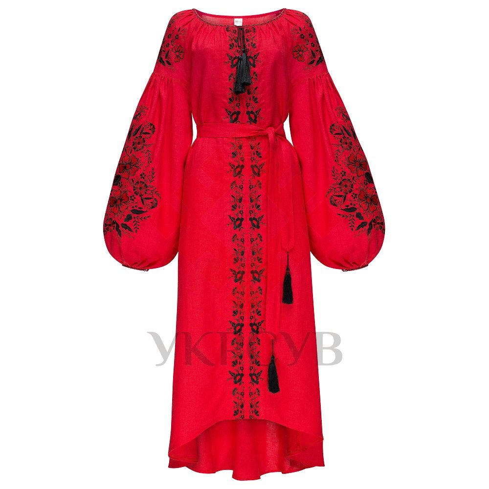 Натуральна лляна тканина є приємною на дотик та дозволяє шкірі "дихати". Сукня з такого матеріалу є ідеальним літнім вбранням. Окрім того, червоний колір "освіжить" власницю і зробить її яскравішою.Характер орнаменту: - рослинний.