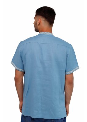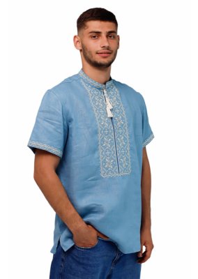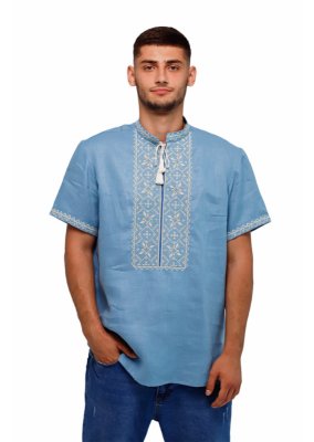Вишиванка чоловіча Слобожанка - Лучеслав к/р (блакитний льон) (16894)