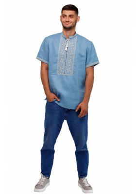 Вишиванка чоловіча Слобожанка - Лучеслав к/р (блакитний льон) (16901)