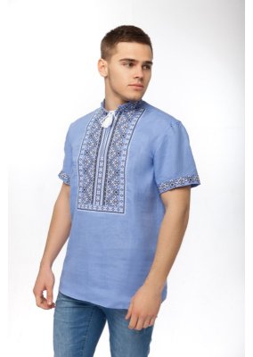 Вишиванка чоловіча Слобожанка - Пересвіт (блакитний льон) (16632)