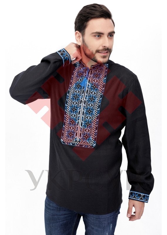 Вишиванка чоловіча Слобожанка - Мирослав (чорний льон) (13696)