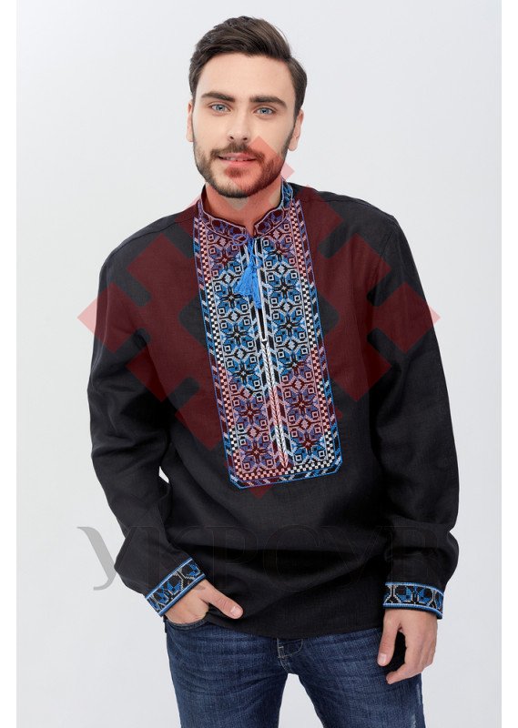 Категорія: Сорочки Сорочка чоловіча вишиванка Мирослав (чорний льон) - Слобожанка