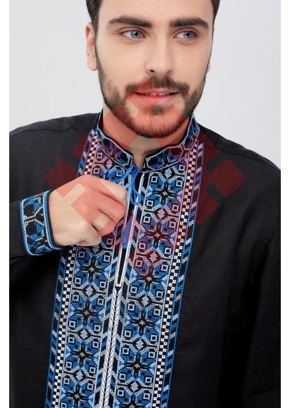 Вишиванка чоловіча Слобожанка - Мирослав (чорний льон) (29573)