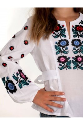 Ця дитяча вишита сорочка личитиме дівчинці будь-якого віку. Білосніжна вишиванка є влучним варіантом для шкільних заходів та святкових днів. Вільний крій виробу не обмежує рухи. Виготовлена з натуральної тканини "батист", яка дає шкірі можливість "дихати" і добре вбирає вологу. Вишивка виконана гладдю різнобарвними нитками. Візерунки розміщені на грудях і рукавах виробу.Загальна інформація