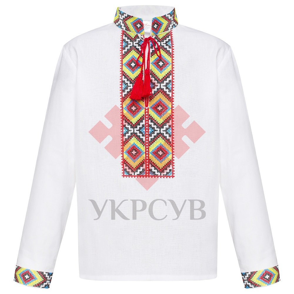 Дитяча вишиванка в білому кольорі поєднала в собі давні традиції, сучасні тенденції та комфорт. Натуральна бавовняна тканина та акуратна машинна вишивка у техніці "хрестик" - визначає високу якість виробу. Візерунок, в основу якого покладений давній оберіг та символ, що приносить удачу - ромб, розміщений спереду сорочки та на рукавах.
