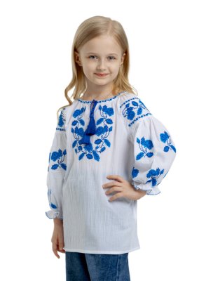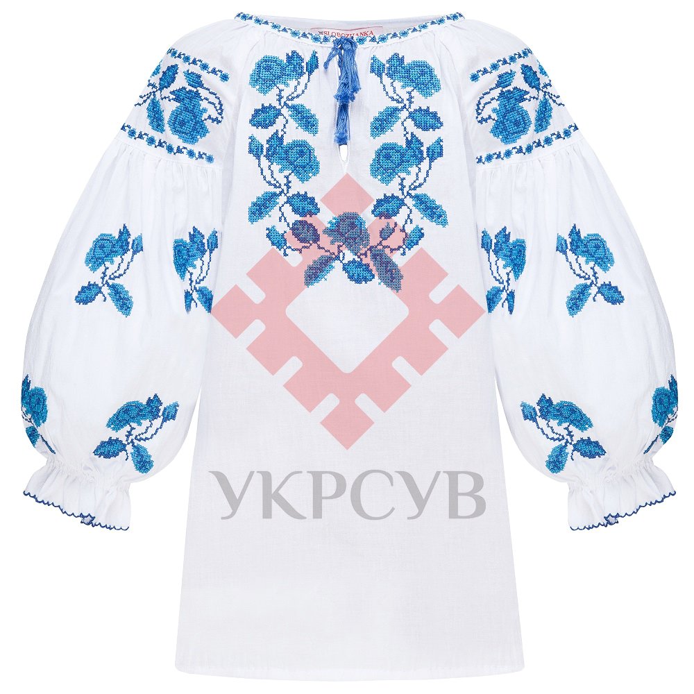 100% бавовна, блакитно-синя вишивка, рукав 3/4