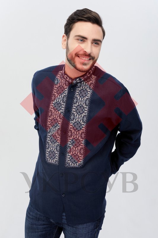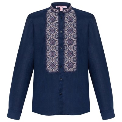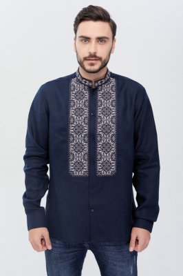 Вишиванка чоловіча Слобожанка - Всеслав (темно-синій льон) (29731)