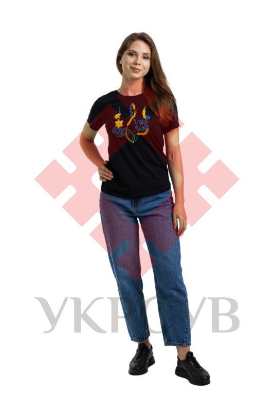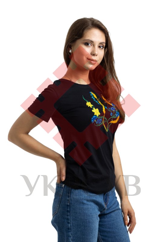 Футболка жіноча Колоски-Тризуб (чорна) (34289)