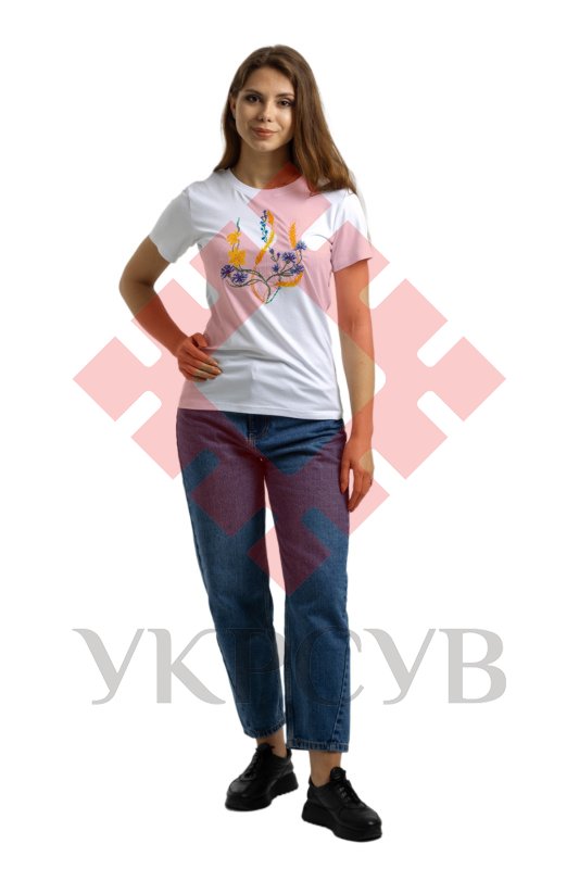 Футболка жіноча Колоски-Тризуб (біла) (34278)