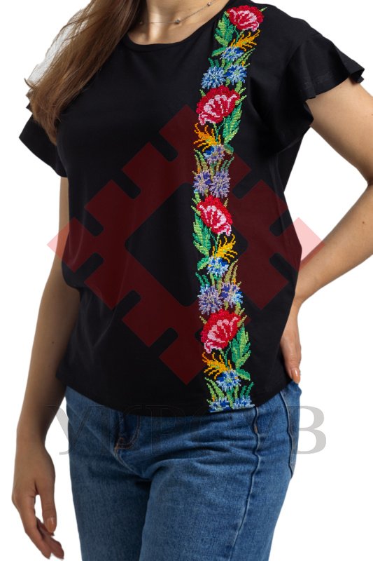 Футболка вишиванка жіноча - Макова доріжка (чорна) (34261)