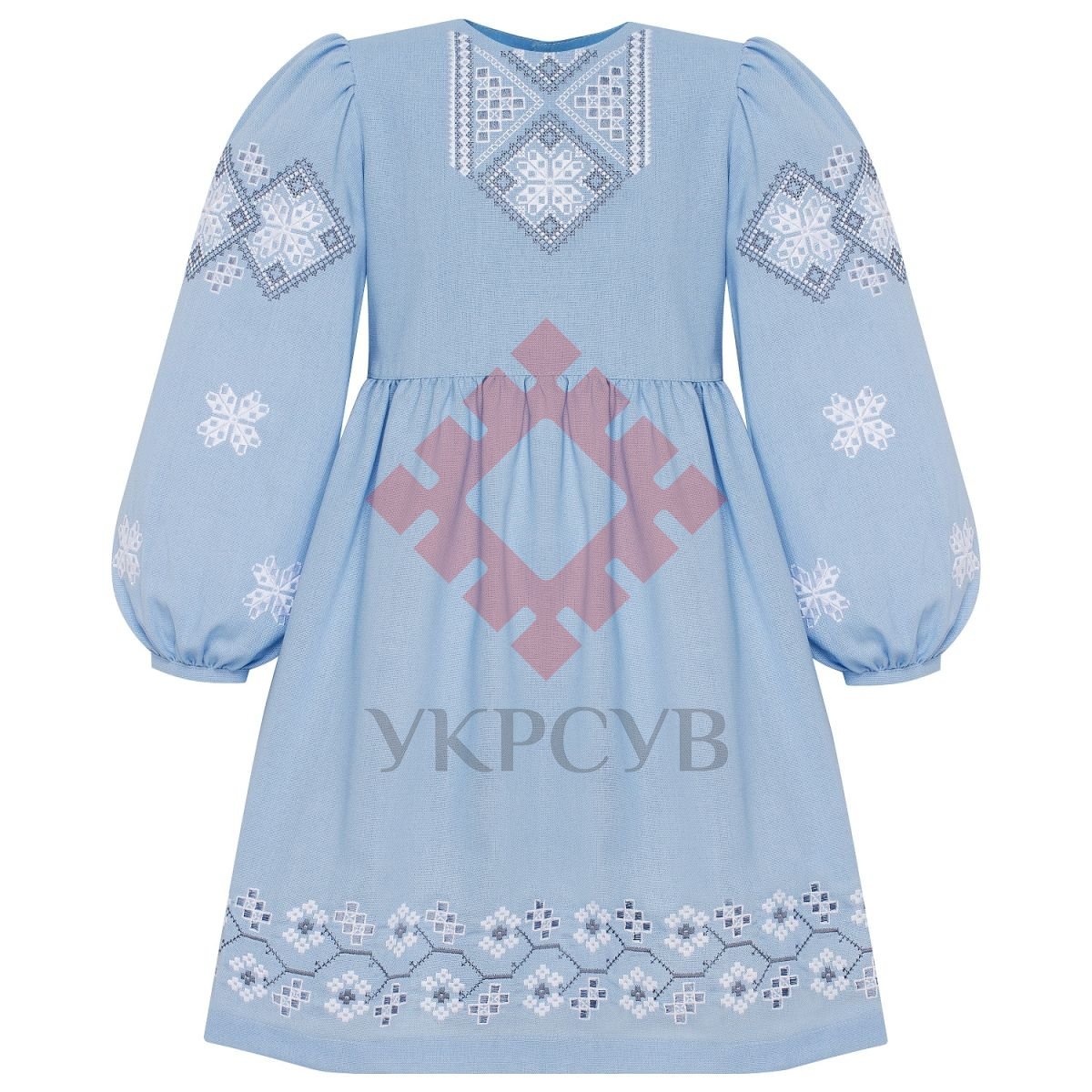 Дитяча сукня ніжного блакитного кольору - прекрасно підійде для свята, і для носіння на кожний день. Сукня прикрашена лаконічною, традиційною вишивкою.