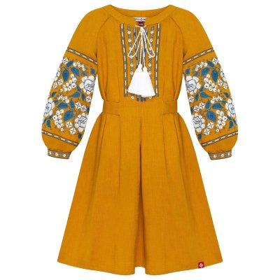Дитяча сукня з натурального льону - є водночас практичним щоденним та святковим одягом для Вашої малечі. Візерунок розміщений на рукавах і на передній частині виробу. Бантик-зав'язка чудово корегує форму та додає оригінальності. Тканина є приємною до тіла, тому таку сукню Ваша дівчинка одягатиме з радістю!Загальна інформація
