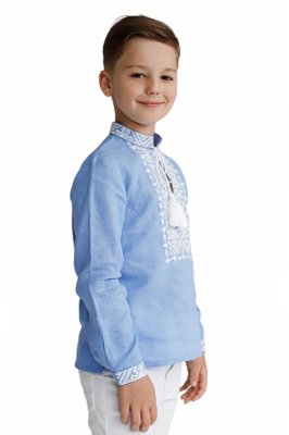 Дитяча вишиванка у блакитному кольорі поєднала в собі давні традиції, сучасні тенденції та комфорт. Натуральна лляна тканина та акуратна машинна вишивка гладдю - визначає високу якість виробу.