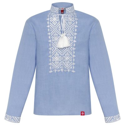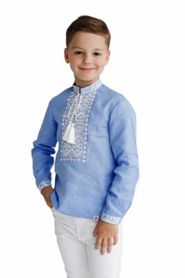 Дитяча вишиванка у блакитному кольорі поєднала в собі давні традиції, сучасні тенденції та комфорт. Натуральна лляна тканина та акуратна машинна вишивка гладдю - визначає високу якість виробу.