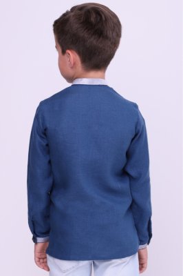 Дитяча вишиванка у синьому кольорі поєднала в собі давні традиції, сучасні тенденції та комфорт. Натуральна лляна тканина та акуратна машинна вишивка гладдю - визначає високу якість виробу.