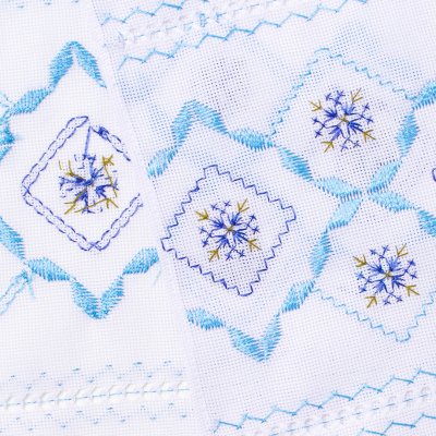 Малюнок рушника - вишитий стовпчиком та хрестиком, з елементами мережки.
