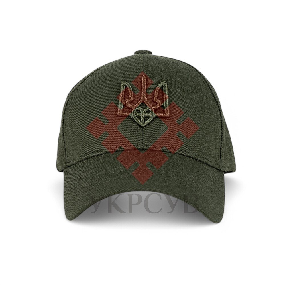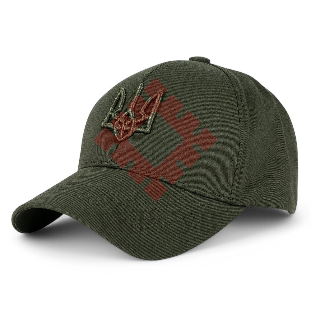 Бейсболка виготовлена з щільної тканини оливкового кольору. Склад тканини: 70% бавовна, 30% - поліестер. Напис виконаний 3D вишивкою. Є можливість регулювання розміру кепки.