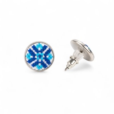 Багатогранний український стиль, нескінченне поєднання кольорів і схем, ювелірна вишивка хрестиком. Матеріали: медична сталь (гіпоалергенна), бавовна, нитки муліне Розмір: діаметр 1,2 см