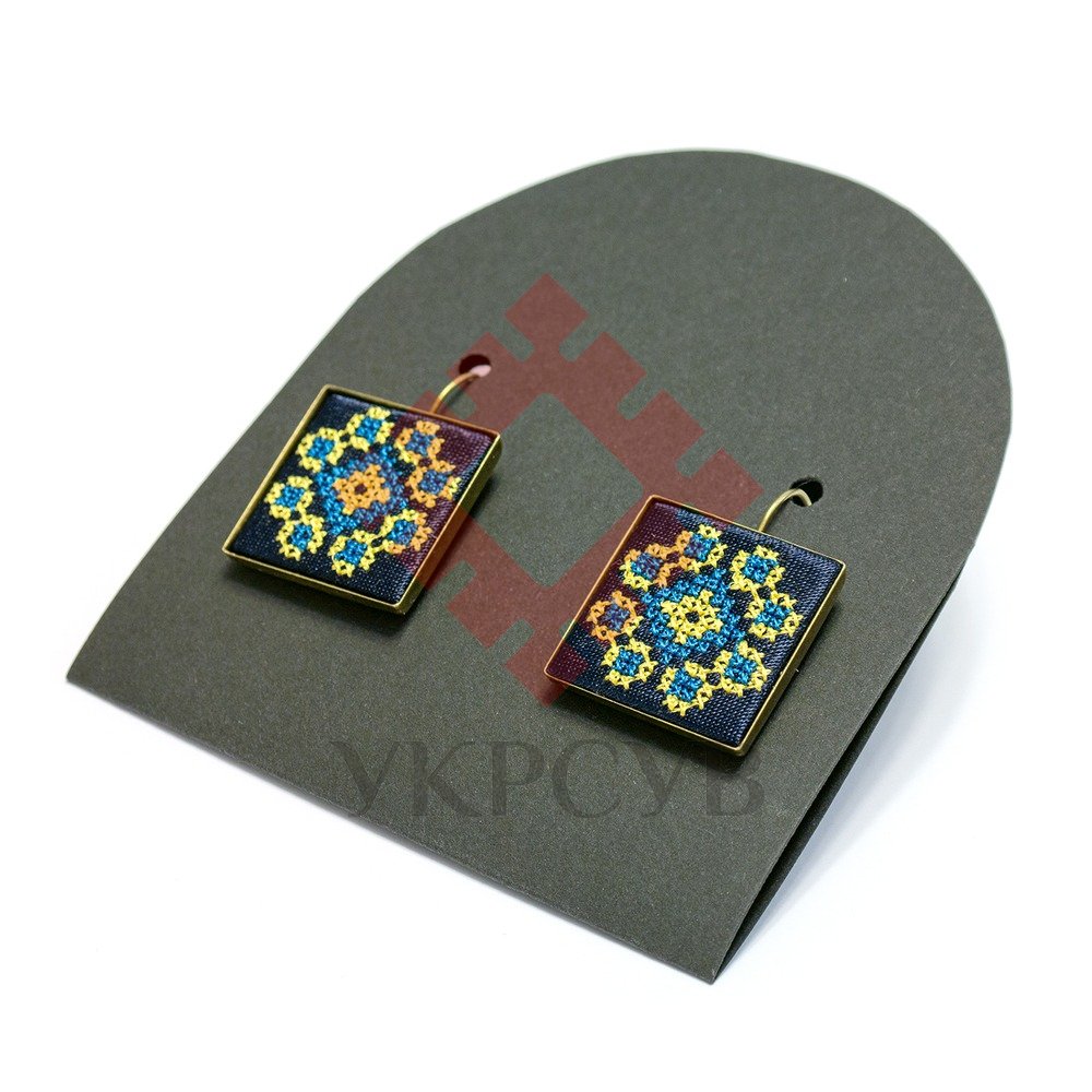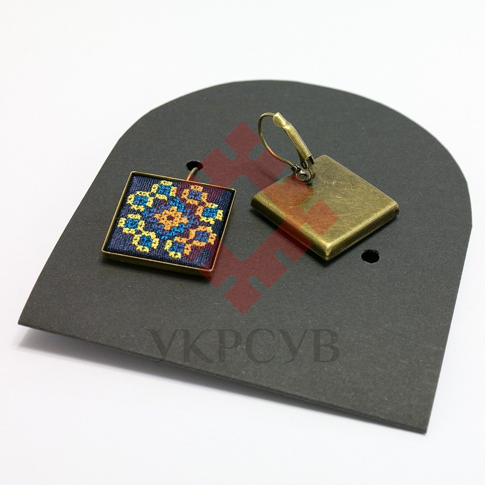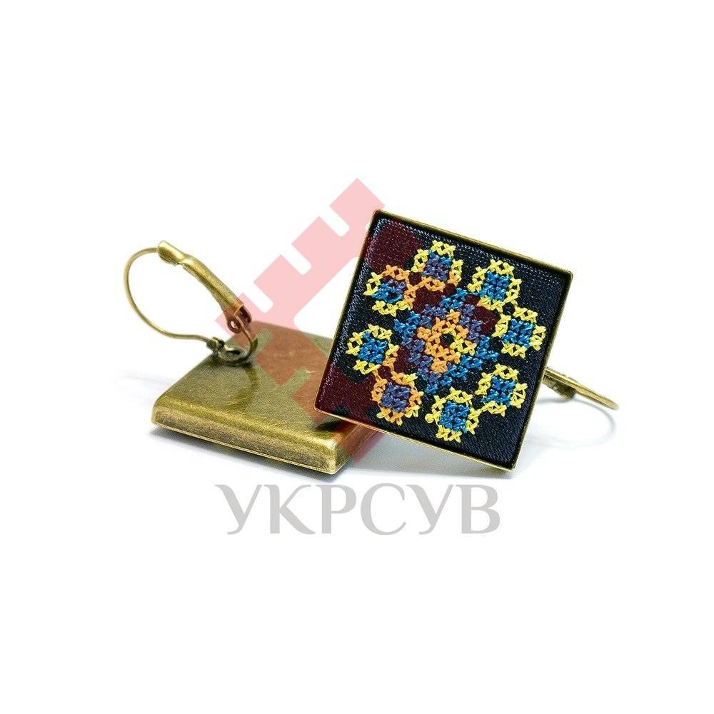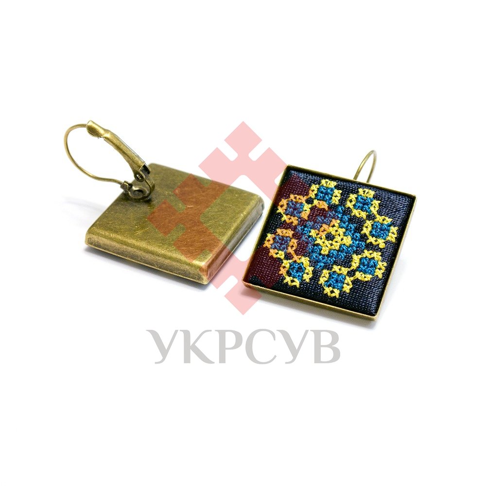 Декоративна особливість сережок – вишита платформочка розміром 25х25мм, яка виготовлена із чорного сатину та вишита білими та червоними нитками.