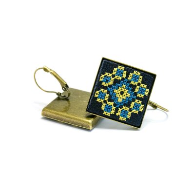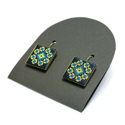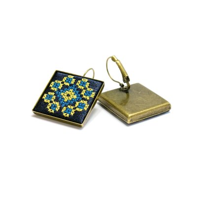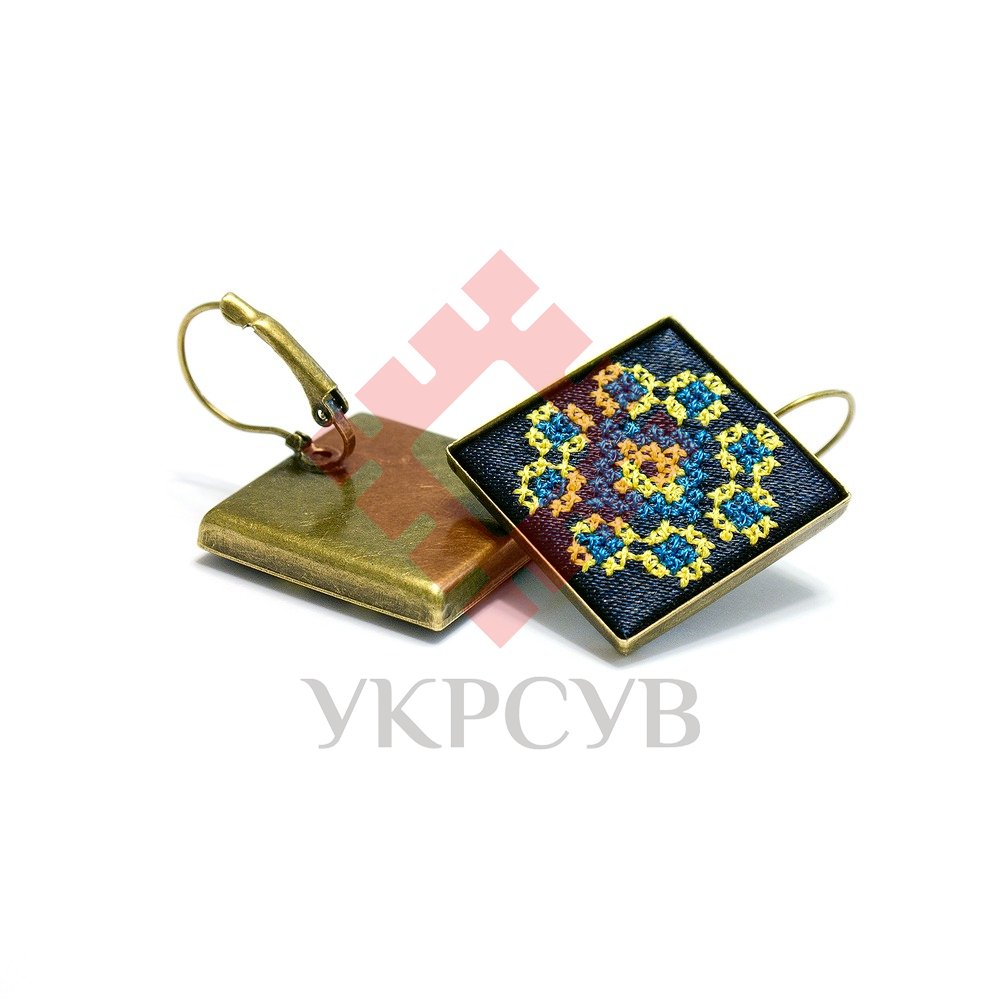 Вишиті сережки "Росава" виготовлені з металу, тонованого під колір латуні. Застібка має фіксатор для більш надійної фіксації.