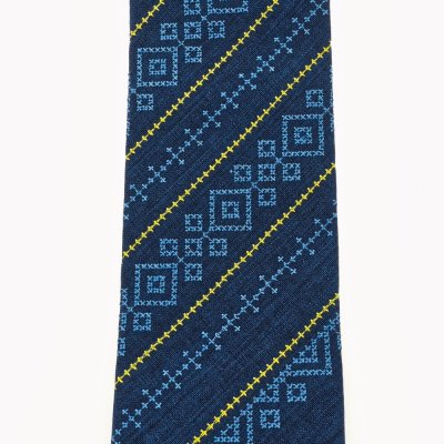 Вишита краватка – це унікальний подарунок для керівника, друга чи колеги по роботі. Вона є необхідним аксесуаром для ділової людини. Краватка виготовлена з костюмної тканини синього кольору, класичного крою. Довжина виробу – 145 см.