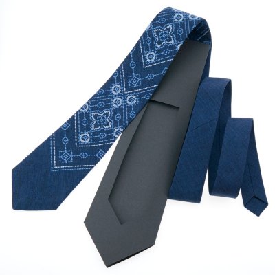 Вишита краватка – це унікальний подарунок для керівника, друга чи колеги по роботі. Вона є необхідним аксесуаром для ділової людини. Краватка виготовлена з костюмної тканини синього кольору, класичного крою. Довжина виробу – 145 см.