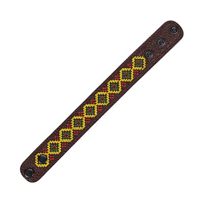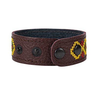 Браслет виготовлений з натуральної шкіри, що гарантує його високу якість, довговічність та комфортне носіння. Основа прикрашена яскравою та чіткою машинною вишивкою, виконаною з особливою увагою до деталей, що відтворює багаті орнаменти української вишивки. Кожен візерунок несе в собі глибокий символізм, роблячи браслет не просто прикрасою, а справжнім оберегом.