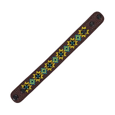 Браслет виготовлений з натуральної шкіри, що гарантує його високу якість, довговічність та комфортне носіння. Основа прикрашена яскравою та чіткою машинною вишивкою, виконаною з особливою увагою до деталей, що відтворює багаті орнаменти української вишивки. Кожен візерунок несе в собі глибокий символізм, роблячи браслет не просто прикрасою, а справжнім оберегом.