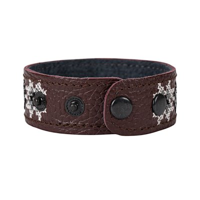 Браслет виготовлений з натуральної шкіри, що гарантує його високу якість, довговічність та комфортне носіння. Основа прикрашена яскравою та чіткою машинною вишивкою, виконаною з особливою увагою до деталей, що відтворює багаті орнаменти української вишивки. Кожен візерунок несе в собі глибокий символізм, роблячи браслет не просто прикрасою, а справжнім оберегом.
