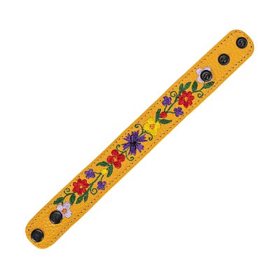 Браслет виготовлений з натуральної шкіри, що гарантує його високу якість, довговічність та комфортне носіння. Основа прикрашена яскравою та чіткою машинною вишивкою, виконаною з особливою увагою до деталей, що відтворює багаті орнаменти української вишивки. Кожен візерунок несе в собі глибокий символізм, роблячи браслет не просто прикрасою, а справжнім оберегом.