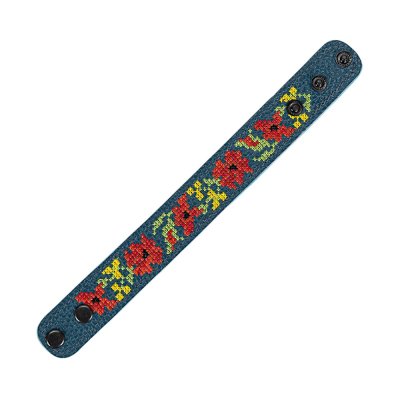 Браслет виготовлений з натуральної шкіри, що гарантує його високу якість, довговічність та комфортне носіння. Основа прикрашена яскравою та чіткою машинною вишивкою, виконаною з особливою увагою до деталей, що відтворює багаті орнаменти української вишивки. Кожен візерунок несе в собі глибокий символізм, роблячи браслет не просто прикрасою, а справжнім оберегом.