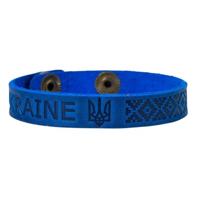Стильний шкіряний браслет стане яскравим аксесуаром для щоденного образу та символом патріотичної підтримки України. Виріб виконаний із натуральної шкіри, прикрашений тисненням з написом Ukraine, гербом та орнаментом у національному стилі.