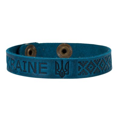 Стильний шкіряний браслет стане яскравим аксесуаром для щоденного образу та символом патріотичної підтримки України. Виріб виконаний із натуральної шкіри, прикрашений тисненням з написом Ukraine, гербом та орнаментом у національному стилі.