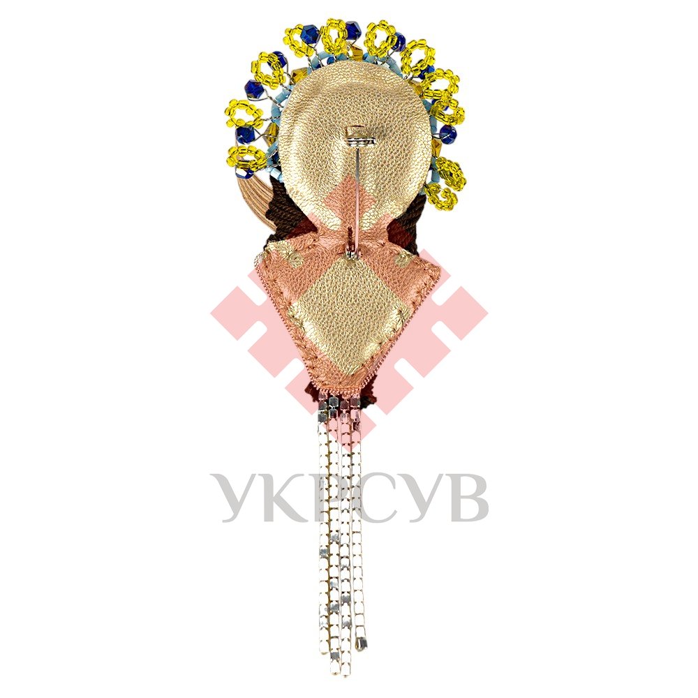 Виріб оздоблений бісером, кристалами та нитками, сплетеними в акуратну косу, яка додає образу жіночності та ніжності. Така прикраса стане чудовим оберегом або патріотичним аксесуаром, який гармонійно доповнить будь-який образ.