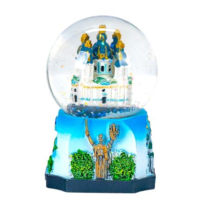 Мініатюрна снігова куля з Андріївською церквою передає чарівність одного з найвідоміших символів Києва. Усередині — витончена модель храму з блакитно-золотими банями, яка оживає, коли всередині кулі закружляє блискучий сніг.