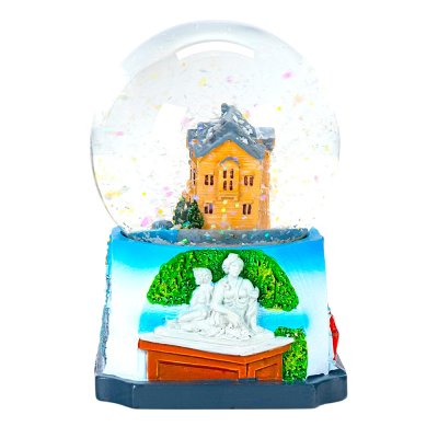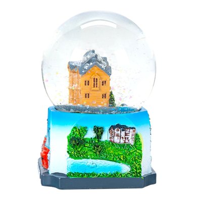 Снігова куля із зображенням Межигір’я переносить у атмосферу затишку та краси величного парку під Києвом. Усередині кулі — мініатюра відомого дерев’яного будинку, який став одним із найпізнаваніших символів цієї локації. Легкий снігопад створює казкову, майже святкову атмосферу.