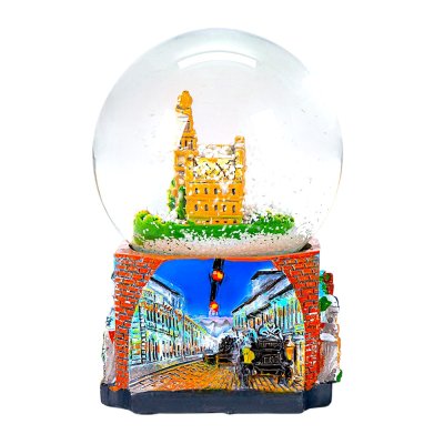 Снігова куля "Чернівці" переносить у атмосферу старовинного міста з унікальною архітектурою та неповторним європейським шармом. Усередині кулі — мініатюрна копія Резиденції митрополитів Буковини і Далмації, перлини архітектури та справжнього символу Чернівців. Теплі охристі відтінки будівлі та м’яке мерехтіння сніжинок створюють відчуття казки.