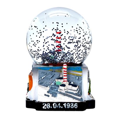 Снігова куля "Чорнобиль" — це особливий сувенір, що нагадує про одну з найважливіших сторінок сучасної історії. Усередині кулі зображено четвертий енергоблок ЧАЕС із характерною червоно-білою трубою та саркофагом — символом зони відчуження. Чорні частинки, що кружляють усередині, створюють унікальний ефект та передають атмосферу цієї місцевості.