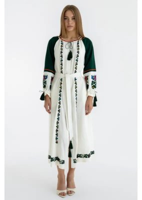 Вишукана лляна сукня «Фолк Мода (1601)» створена за мотивами борщівської вишивки кінця ХІХ – початку ХХ століття. Це не просто одяг, а витвір, що несе в собі історію, культурну глибину та красу українських традицій.