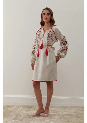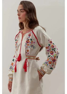 Сукня «Яворина» – це втілення колориту та майстерності яворівської вишивки, що бере початок з мальовничої Львівщини. Вона поєднує традиційні мотиви Галичини з сучасним силуетом, створюючи образ, сповнений жіночності, витонченості й українського духу.