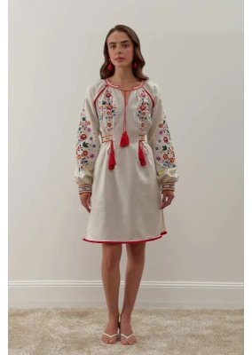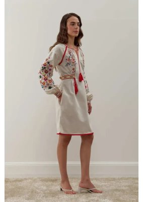 Сукня «Яворина» – це втілення колориту та майстерності яворівської вишивки, що бере початок з мальовничої Львівщини. Вона поєднує традиційні мотиви Галичини з сучасним силуетом, створюючи образ, сповнений жіночності, витонченості й українського духу.