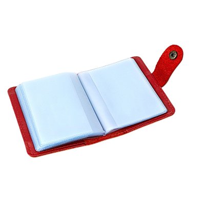 Усередині передбачено 20 прозорих файлів — оптимальний формат для зберігання візиток, банківських карток або невеликих документів. Металева кнопка надійно фіксує візитницю, запобігаючи випадковому відкриванню в сумці чи кишені.