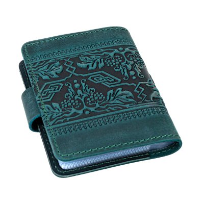 Бірюзова шкіряна візитниця з тисненим тризубом і калиновим орнаментом — це поєднання глибоких українських символів та сучасного стилю. Об’ємний візерунок із калиновими гронами, листям і плетеним тризубом виглядає виразно та додає аксесуару особливої автентичності.