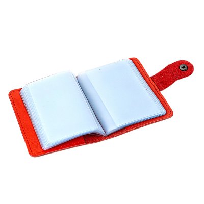 Усередині розміщено 20 прозорих файлів, які зручно підходять для візиток, банківських карток або невеликих документів. Металева кнопка забезпечує надійне закриття та запобігає випадковому відкриванню аксесуару в сумці чи кишені.