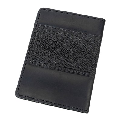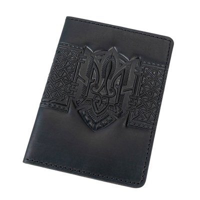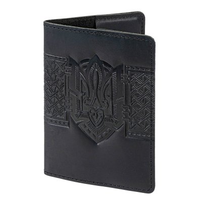 Стильна обкладинка з натуральної шкіри в чорному кольорі створена спеціально для військового квитка. Глибоке тиснення з тризубом та геометричними орнаментами надає аксесуару виразності, підкреслює український характер і робить його помітним серед інших.